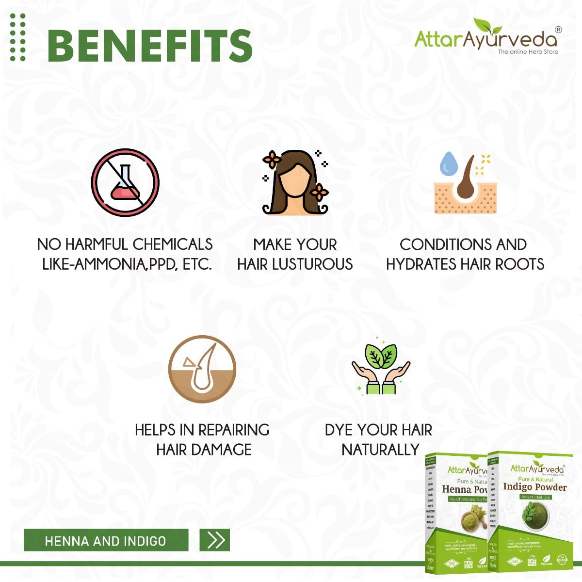 Achieve Any Shade with Attar Ayurveda Henna and Indigo Powder for Black Hair