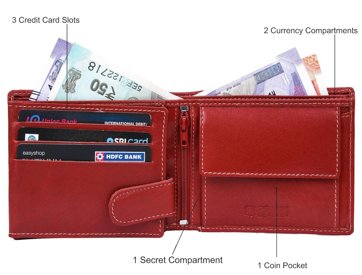 Spacious Coin Pocket : With this wallet you can store and carry your coins separately in the coin pouch avoiding the crumpling of your valuable notes and bills.